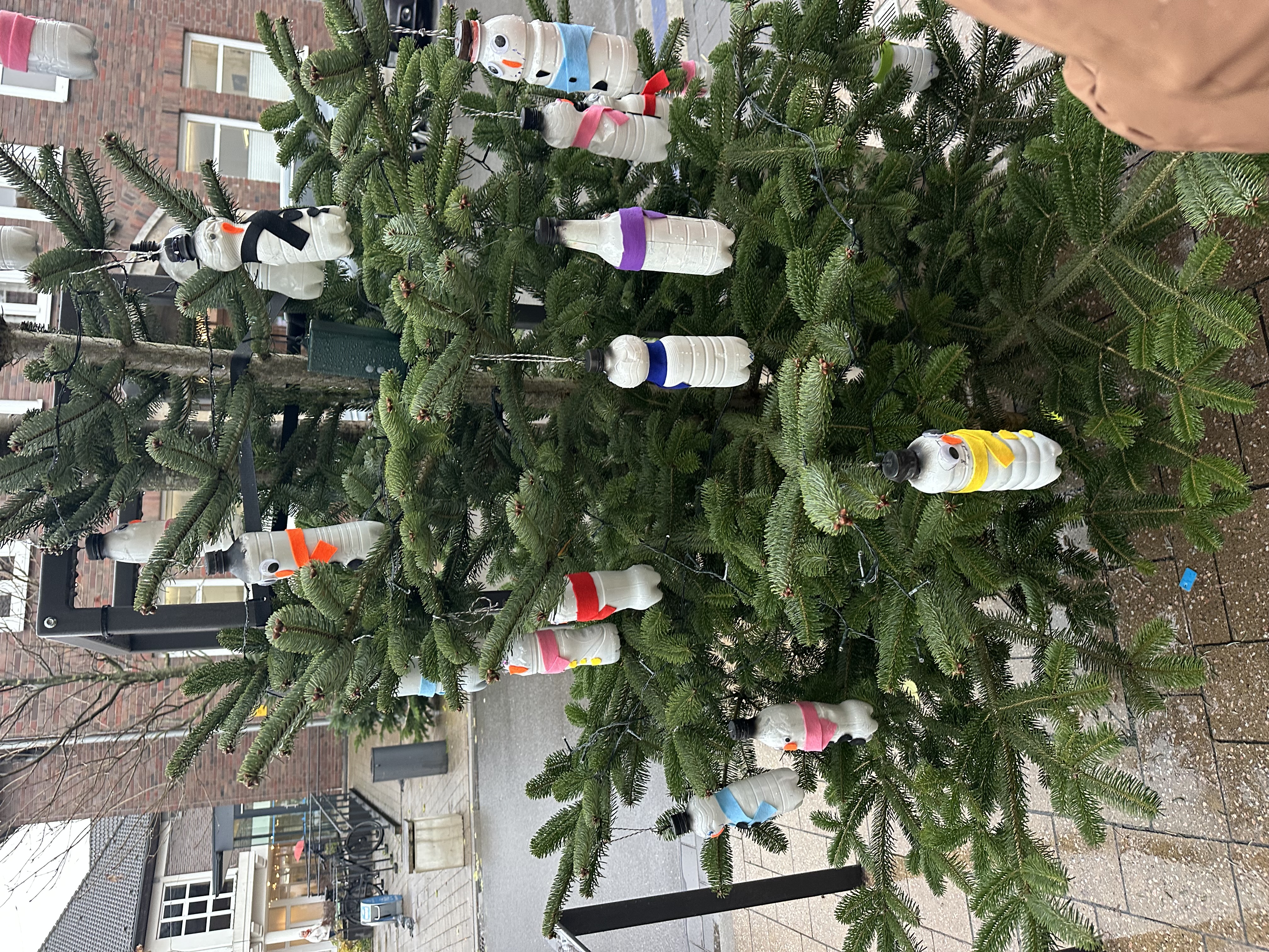 Gut 50 Tannenbäume wurden entlang der Alten Schulstraße und Turmstraße aufgestellt und verbreiten einen (vor)weihnachtliche Glanz in der Stadt. Auch die 1b-Luchse der Lerche haben sich als Deko-Team beworben und in diesem Jahr hat es geklappt! In der Klasse wurde gebastelt und gewerkelt und so konnten nun, passend zum 1. Advent und zum Glück bei trockenem Wetter, die Luchse mit ihren selbstgebastelten Schneemännern „ihren“ Tannenbaum schmücken. Der Baum steht ganz zu Anfang der Alten Schulstraße in Höhe des Rathauses und lädt nun die Menschen aus Monheim ein, auch die anderen buntgeschmückten und liebevoll gestalteten Weihnachtsbäume zu bewundern.