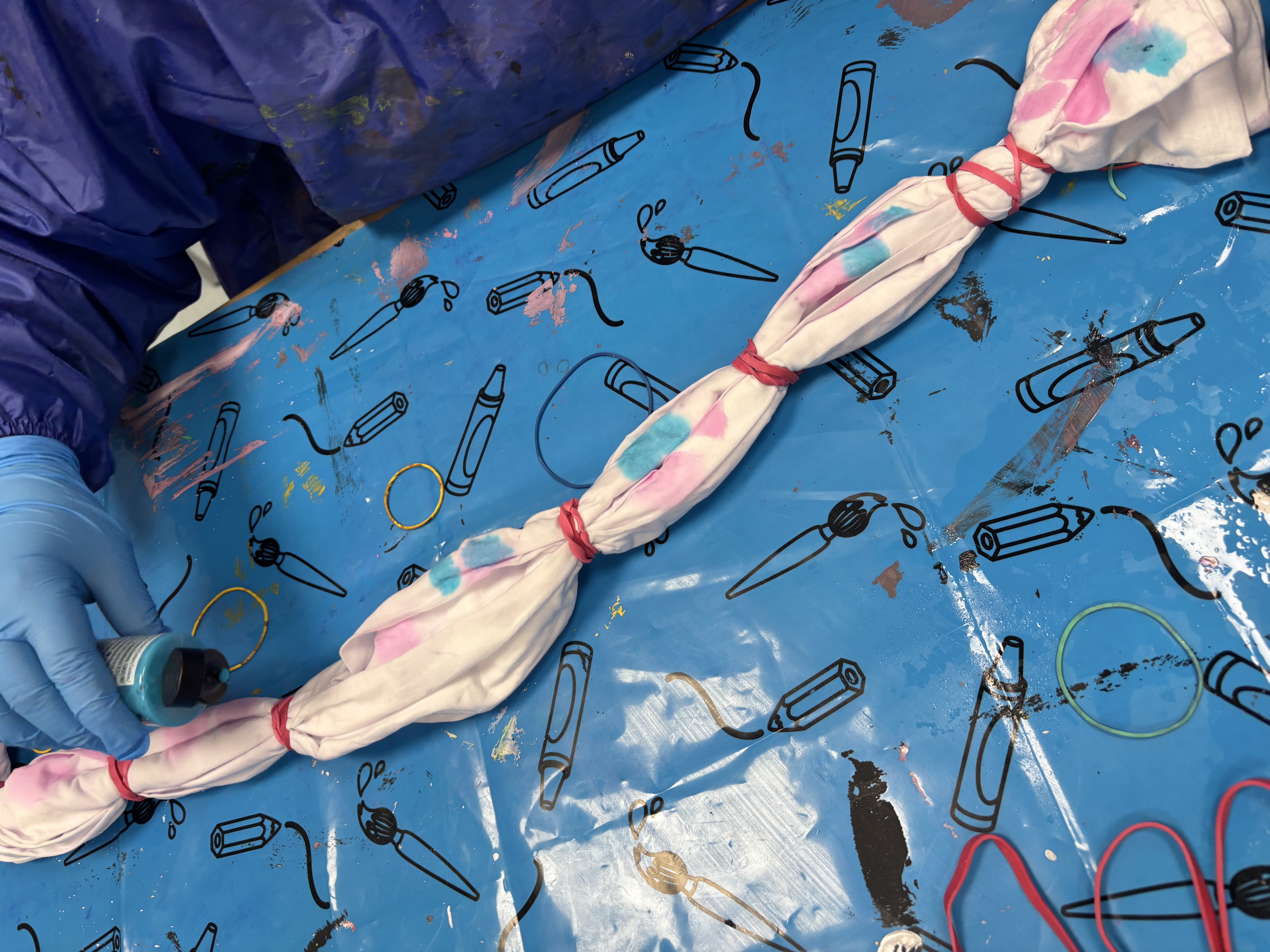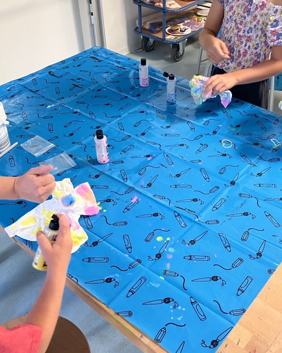 Am Montag, Dienstag und Mittwoch haben die Gruppen jeweils einen von drei Workshops besucht. Im Workshop ‚Batiken‘ wurden Jutebeutel mit kunterbunten Mustern eingefärbt. Im Workshop ’Miniatur Streetart‘ wurden alltägliche Situationen unter Begleitung der Kunstschule Monheim in Miniaturwelten verwandelt, so wurde Türgriffe schnell zu lustigen kleinen Monstern. Im Workshop ‚Graffiti‘ konnten sich die Kinder unter Begleitung eines Graffitikünstlers ausprobieren und gemeinsam echte kleine Kunstwerk erstellen.