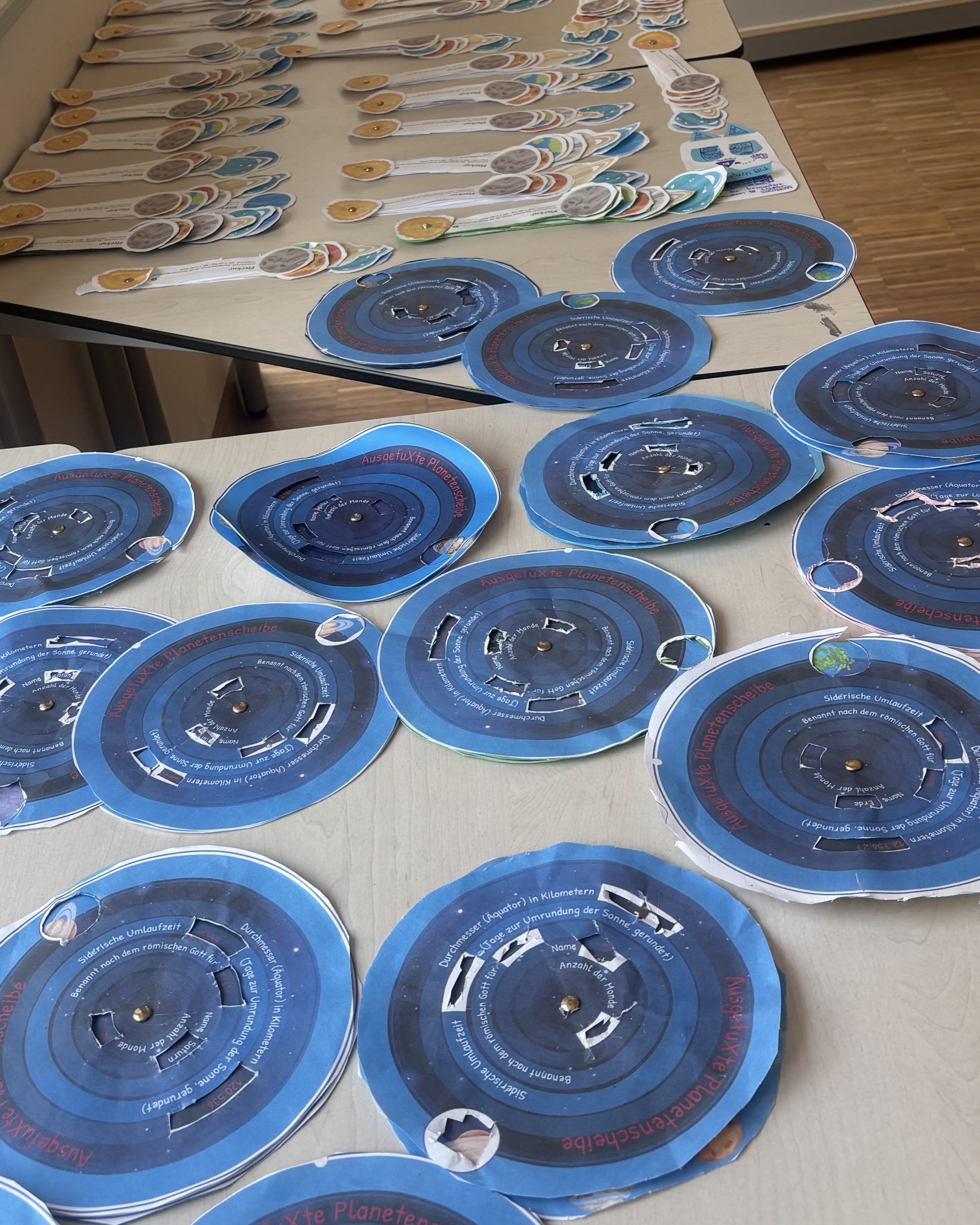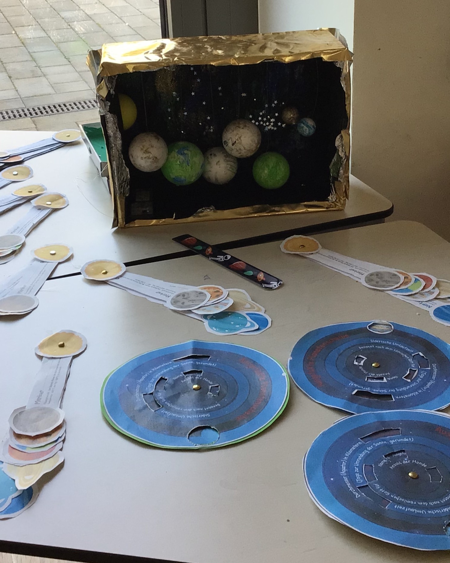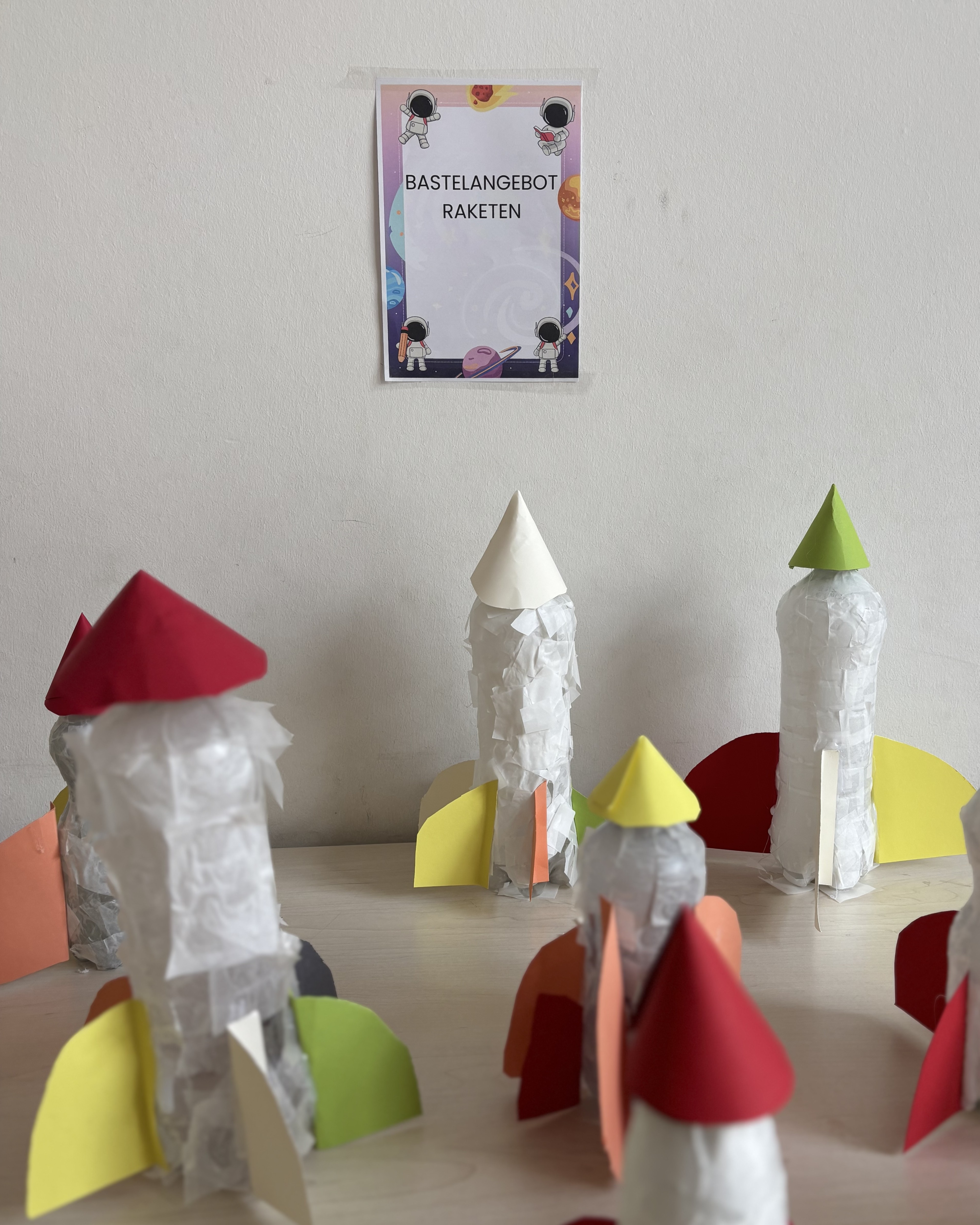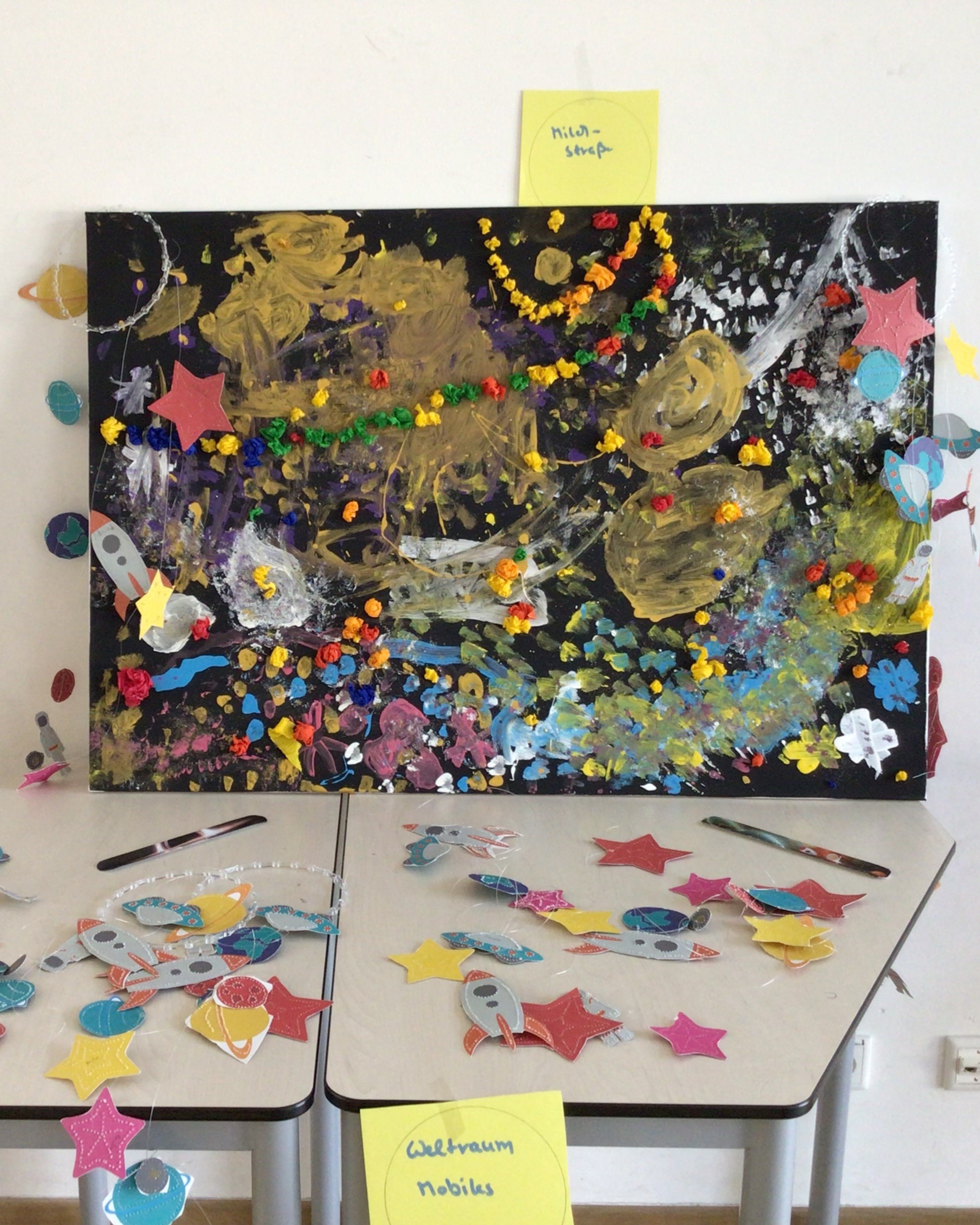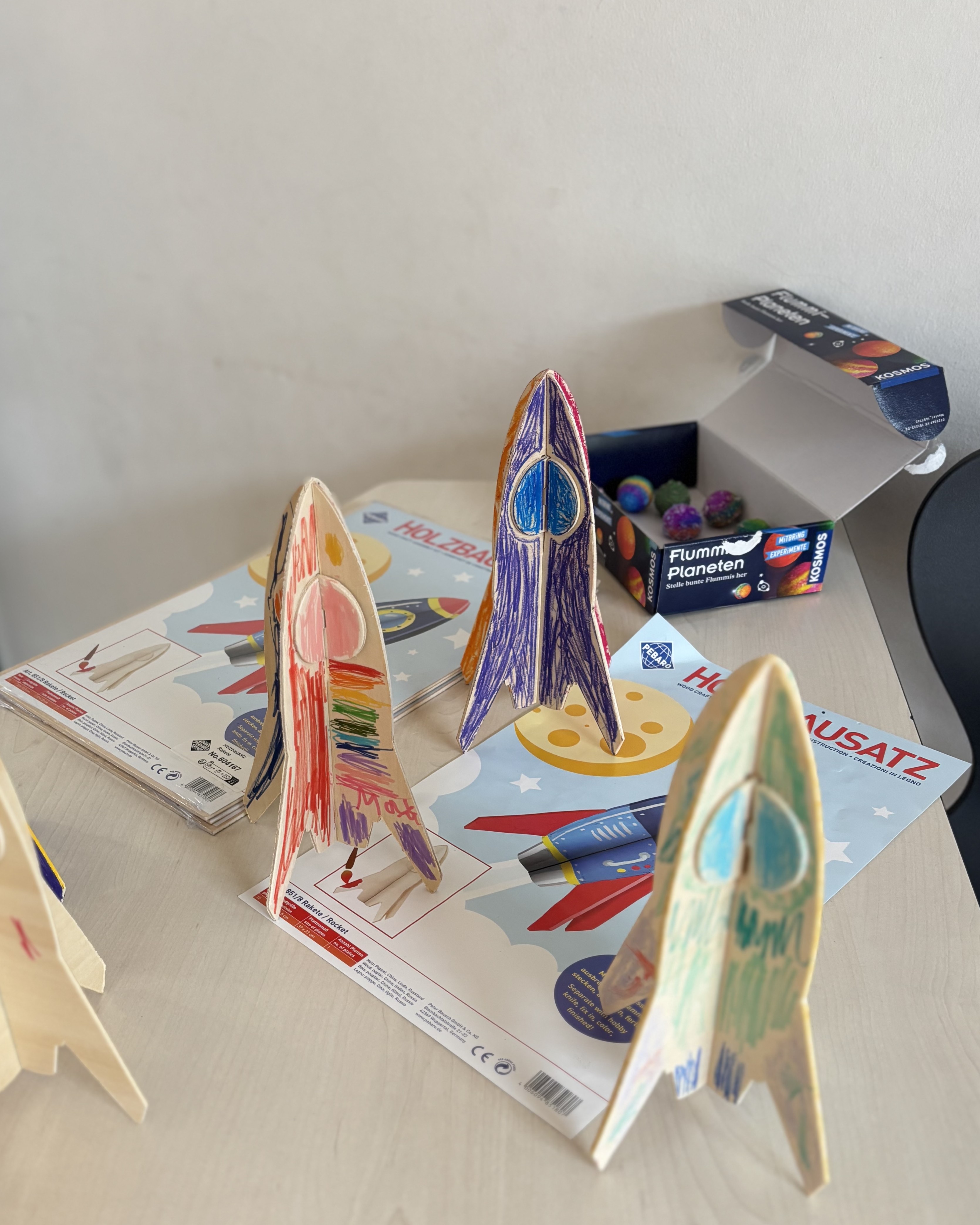 Am Dienstag entstanden zusätzlich fantasievolle Weltraum-Mobiles – für alle, die schon früher mit dem Basteln fertig waren oder einfach noch mehr gestalten wollten.