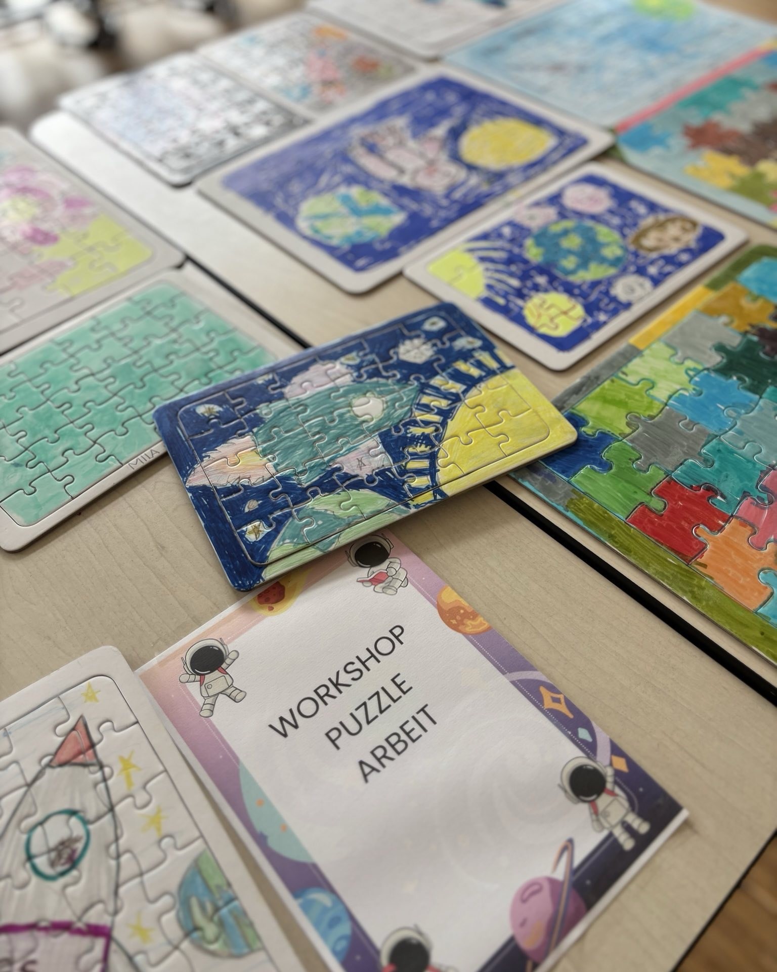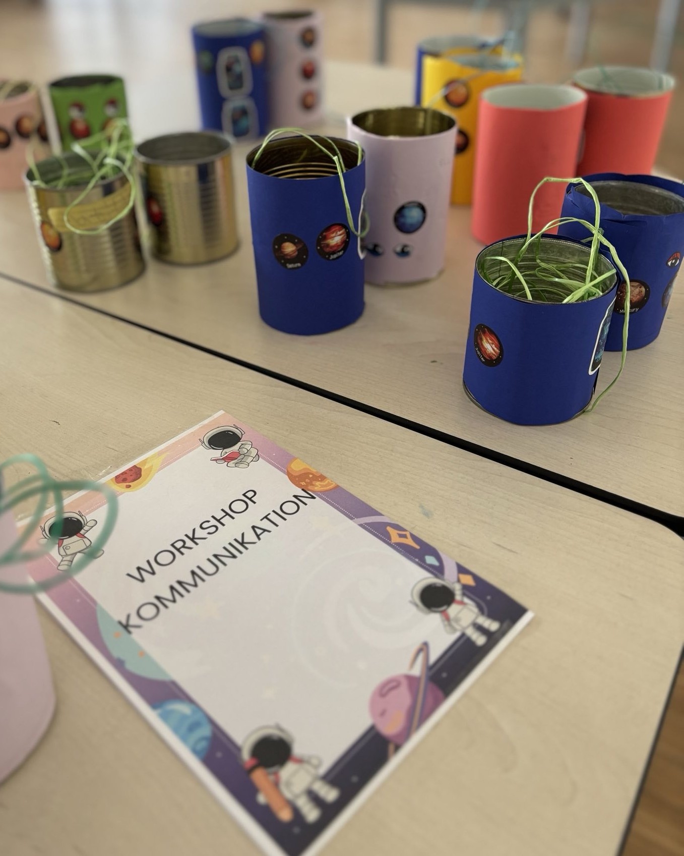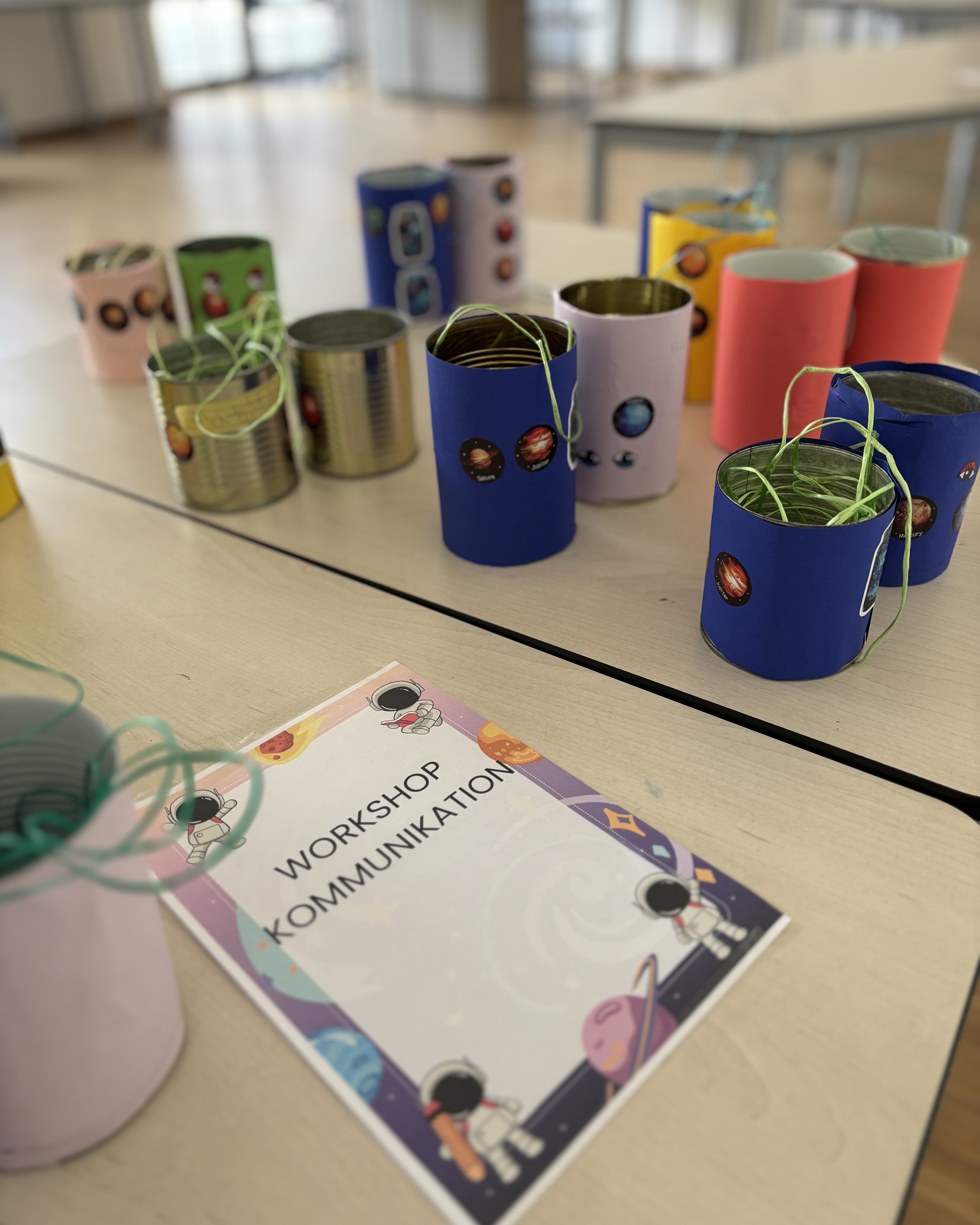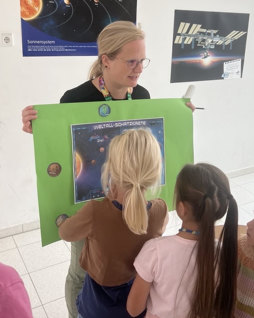 Am Mittwoch stand das Thema Kommunikation zwischen Erde und Weltraum im Vordergrund. Mit selbstgebauten Dosentelefonen erfuhren die Kinder spielerisch, wie Signalverzögerungen im All entstehen. Parallel dazu wurden einige Kinder kreativ: Sie gestalteten eigene Weltraum-Puzzles und individuelle Astronautenfiguren mit ihren eigenen Fotos.