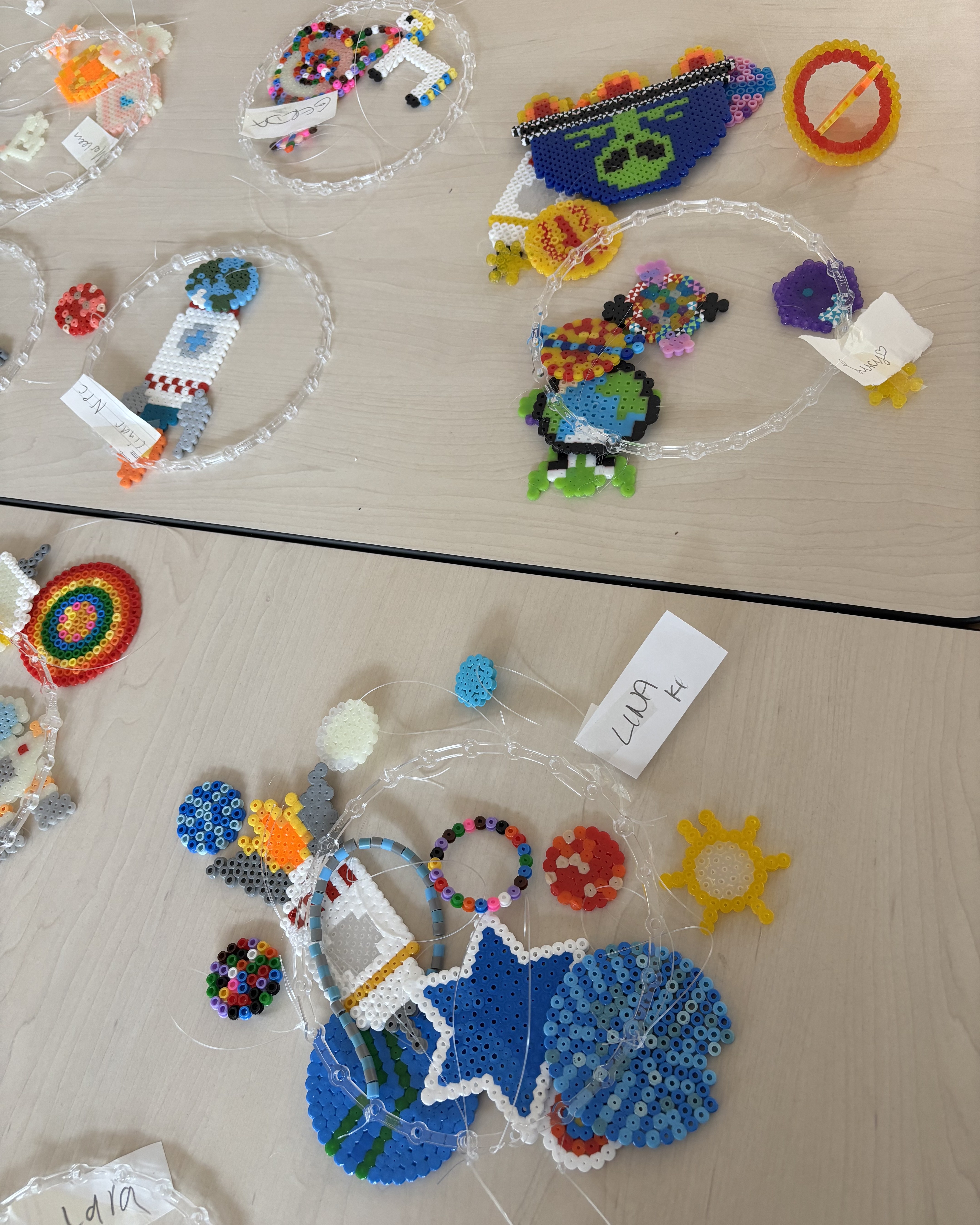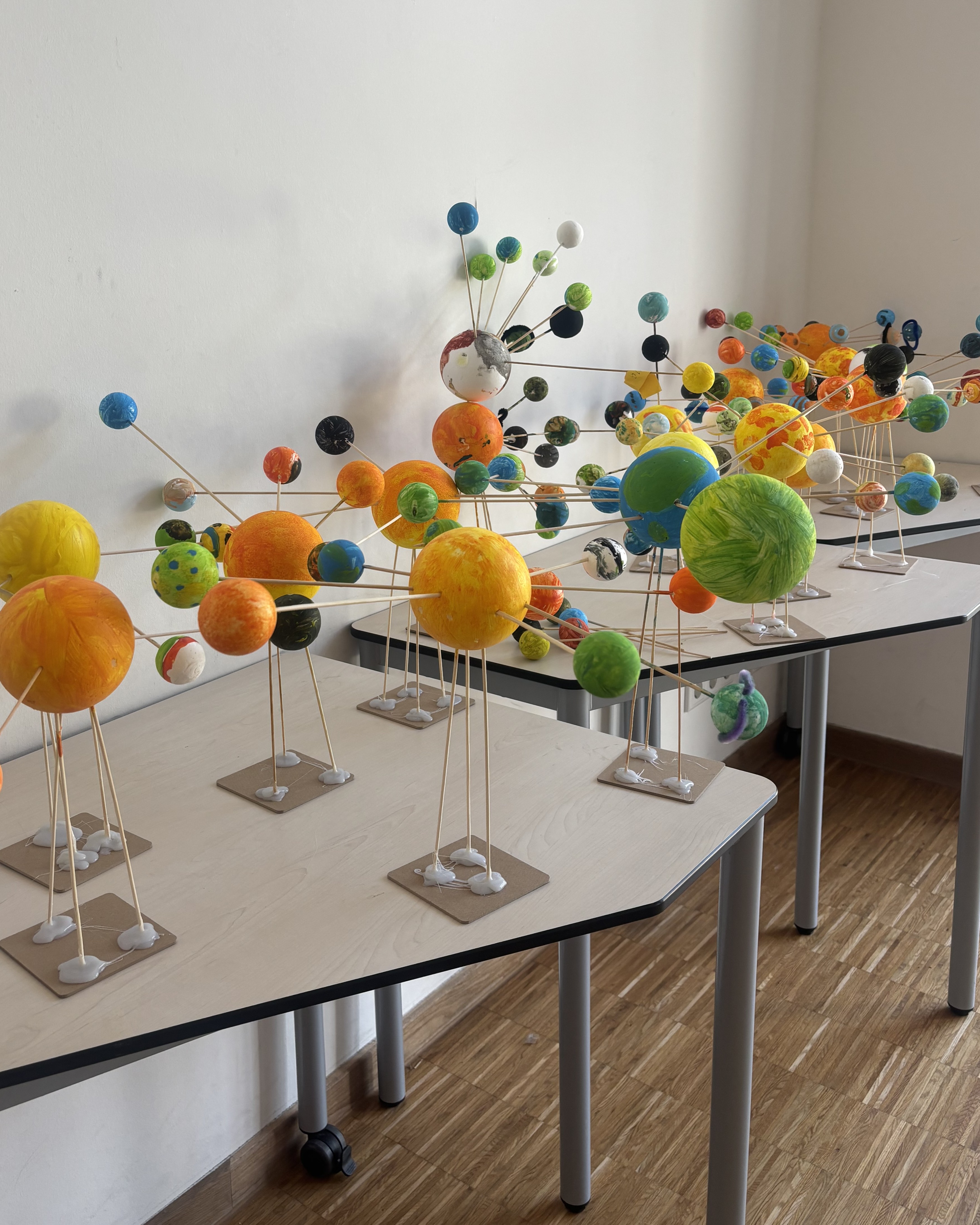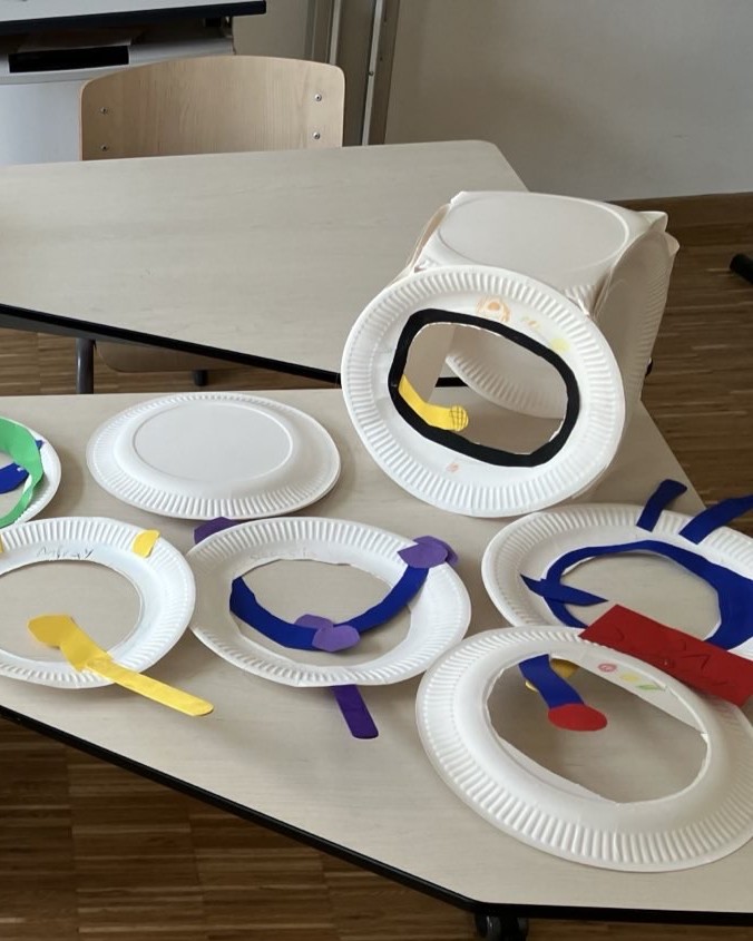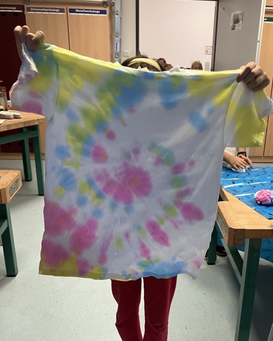 In vielfältigen Workshops näherten wir uns diesen Fragen mit Neugier, Kreativität und Entdeckerfreude. Es wurde experimentiert, gebastelt, diskutiert und gestaunt – stets begleitet von Fantasie und Forschergeist. Die Kinder konnten unter anderem Leinwände gestalten, aus Modeliermasse keine Lebewesen herstellen, eigenen Planeten-Flummis gestalten, kreative Weltraum-Shirts mithilfe der Batiktechnik entwerfen und farbenfrohe Planeten-Mobiles aus Bügelperlen basteln. So entstanden kleine Kunstwerke, die ebenso individuell wie galaktisch waren.
