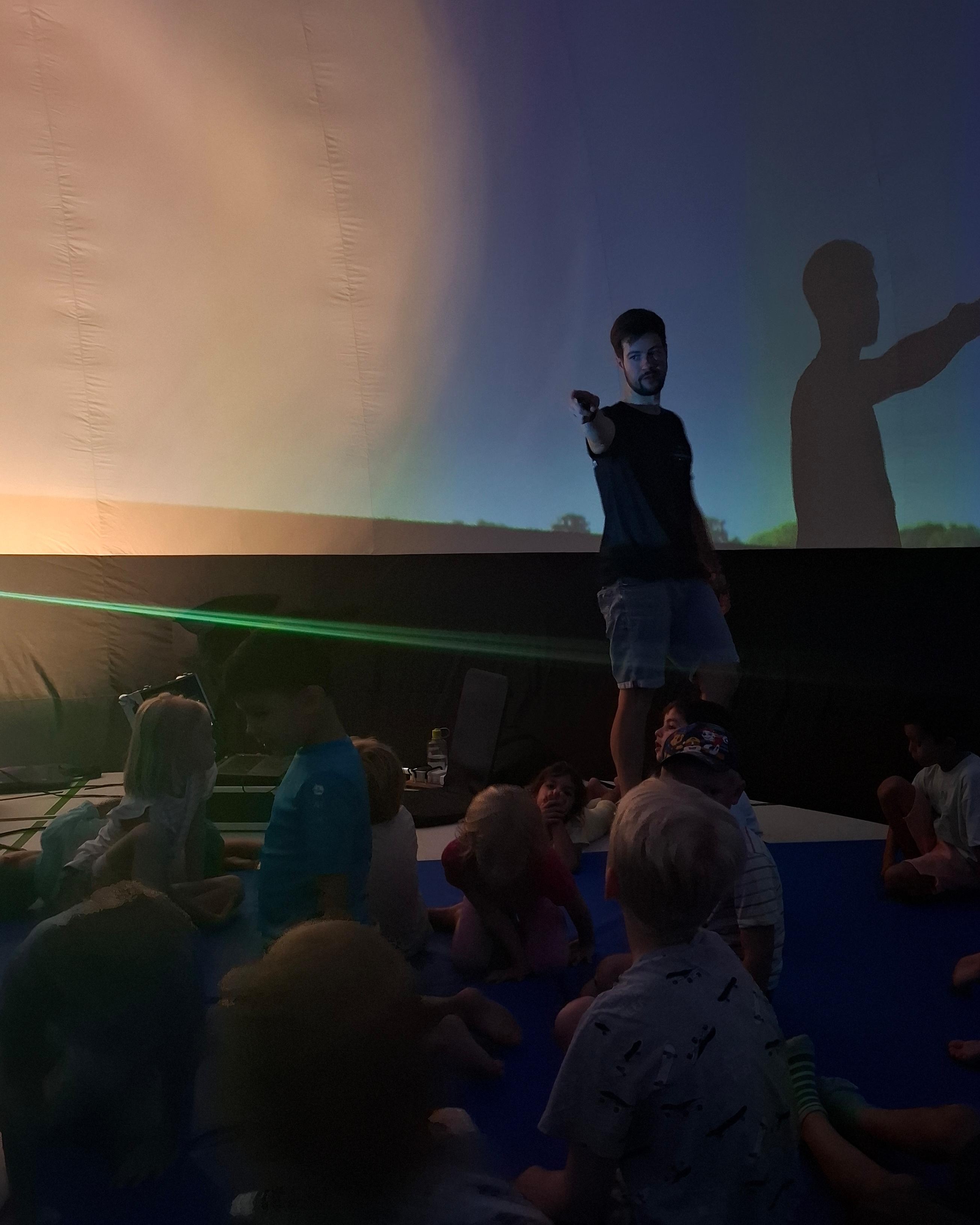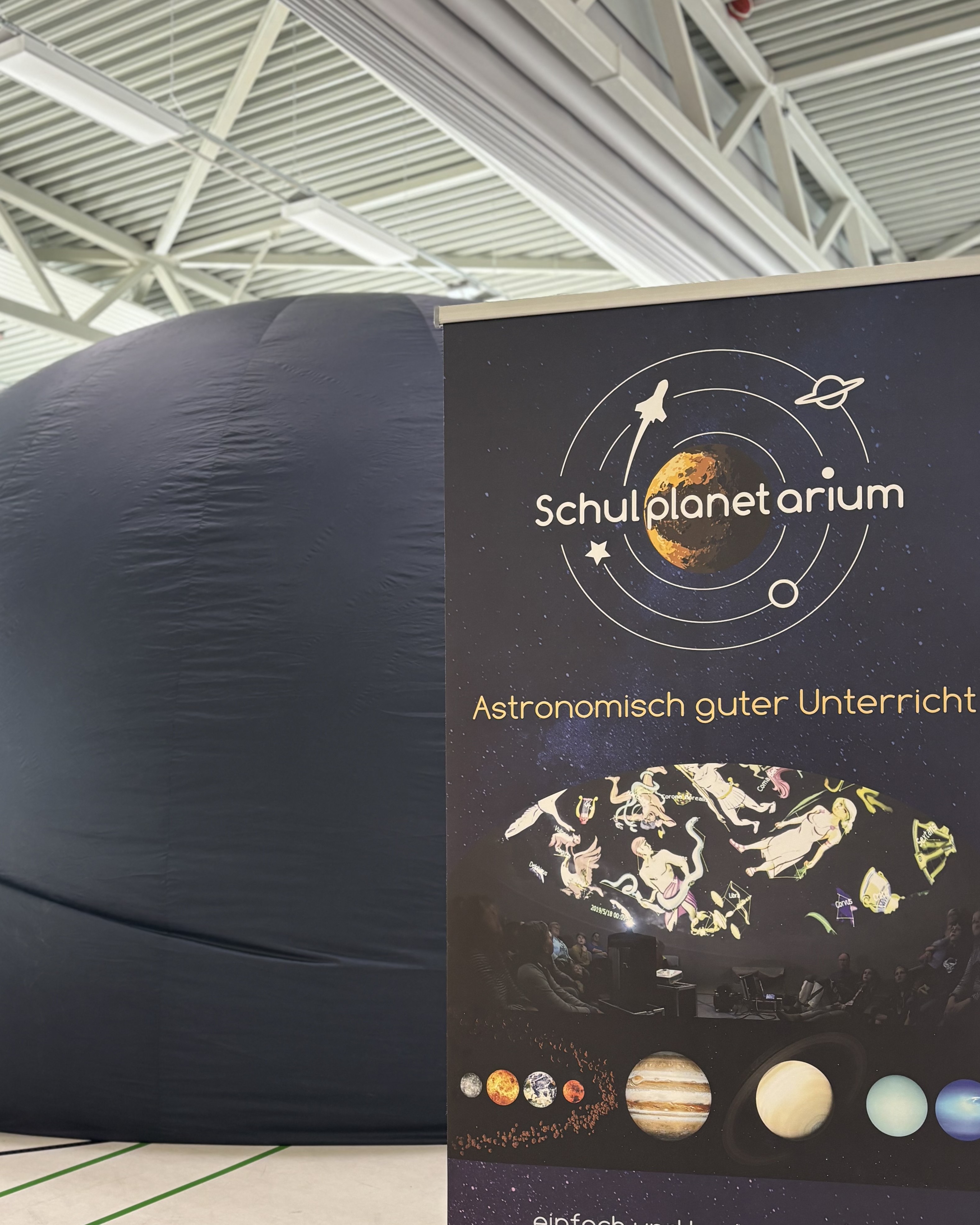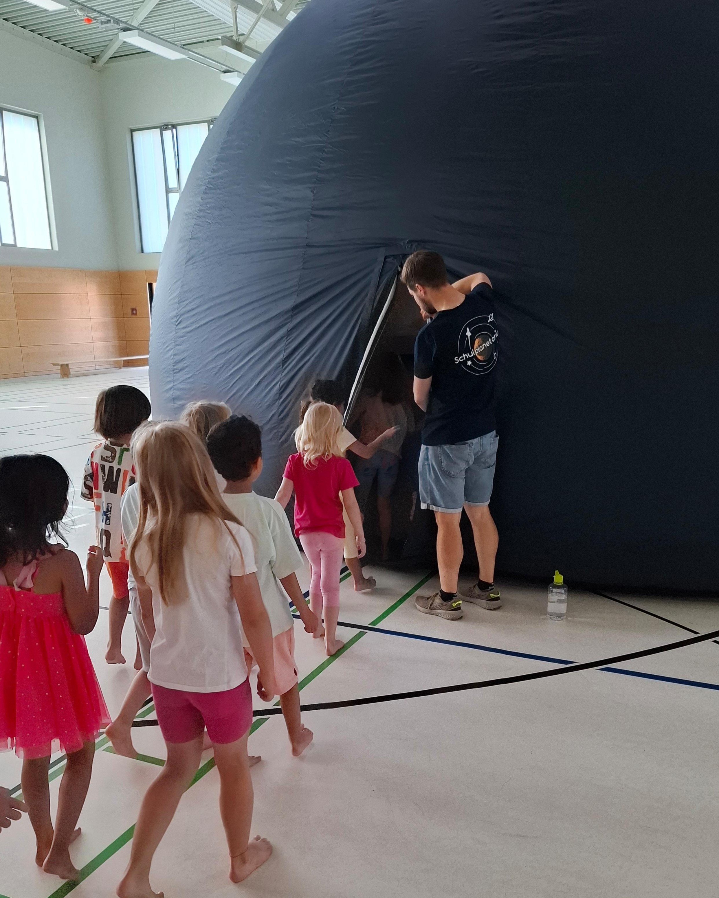 Ein besonderes Highlight war der Besuch des mobilen Schulplanetariums am Mittwoch. In unserer Turnhalle aufgebaut, sorgte es für staunende Gesichter. Gemeinsam unternahmen wir eine Reise durch den Sternenhimmel – beeindruckend und lehrreich für Groß und Klein!