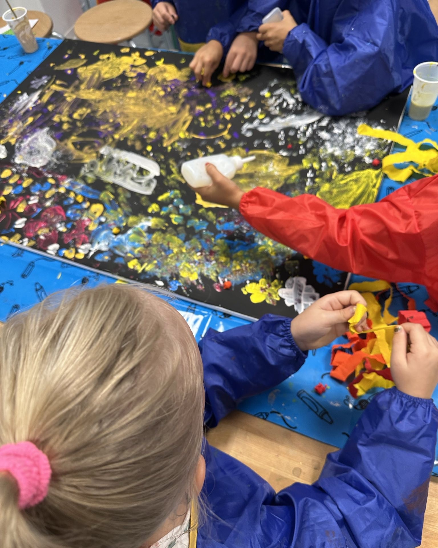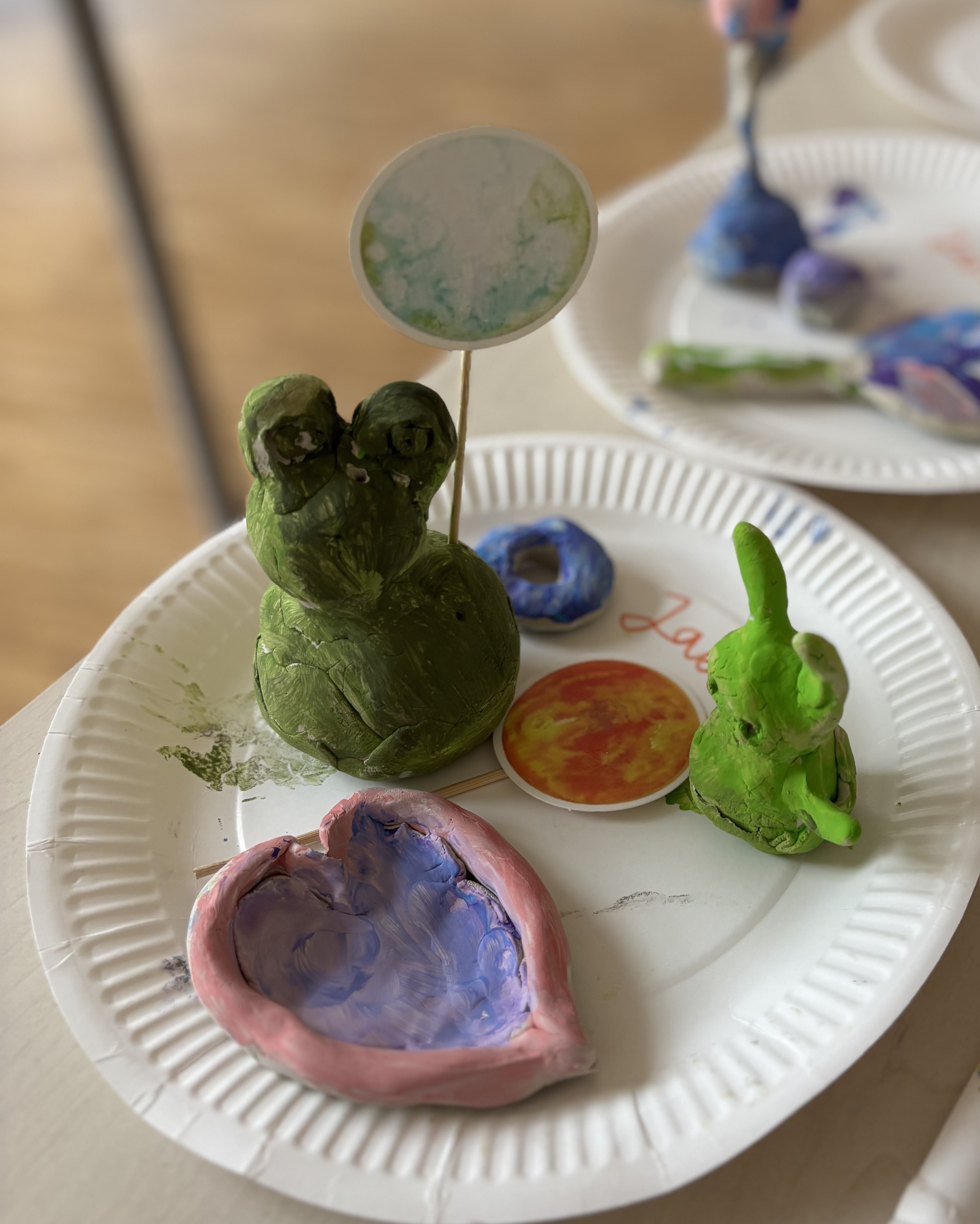 In künstlerischen Angeboten wie Malen, Basteln und Gestalten konnten die Kinder ihre Eindrücke zu Papier bringen. Dabei entstanden lauter kunterbunte Kunstwerke.